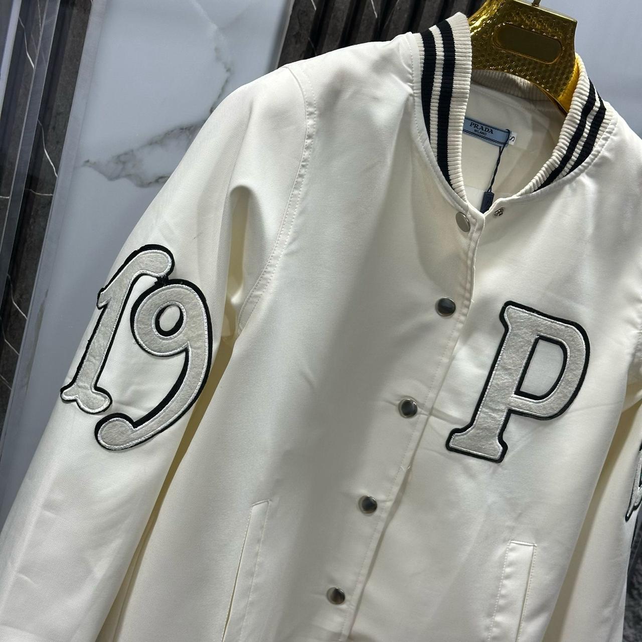 Confeccionada en tejido satinado con acabado mate, esta chaqueta combina un diseño clásico con detalles contemporáneos. Presenta cuello, puños y cintura acanalados con franjas deportivas, y apliques bordados en relieve que aportan textura y estilo. Su estructura ligera y corte recto la convierten en una prenda icónica, ideal para un look urbano con un toque sofisticado.